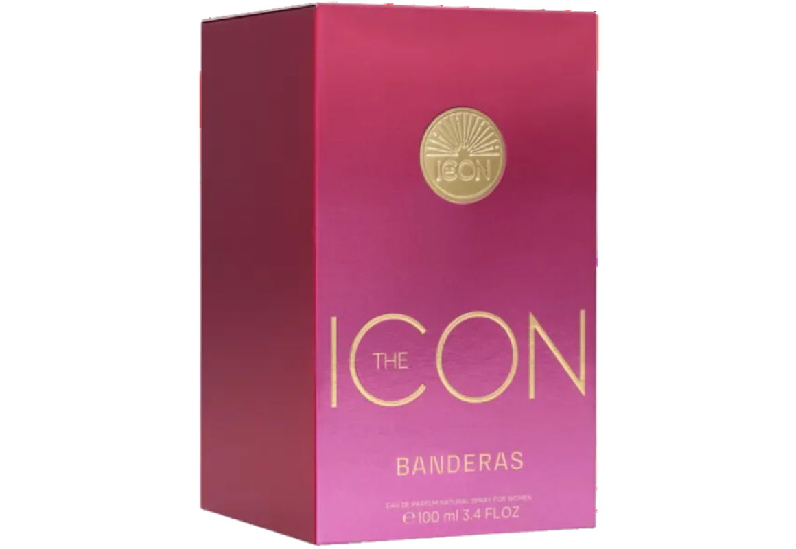 The Icon eau de Parfum da grife Antonio Banderas, família olfativa oriental floral, perfume feminino espanhol lançado em 2023.