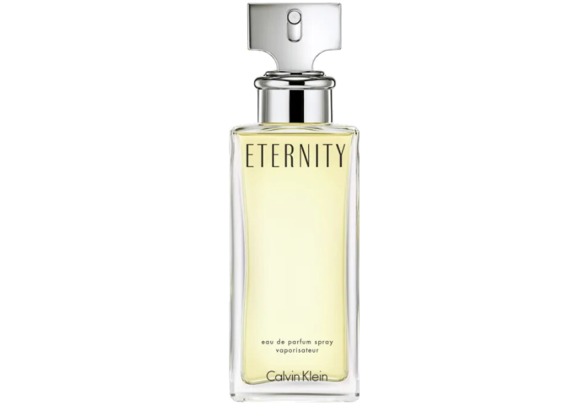 Eternity Eau de Parfum da Grife Calvin Klein, família olfativa floral, perfume feminino espanhol lançado em 1988.