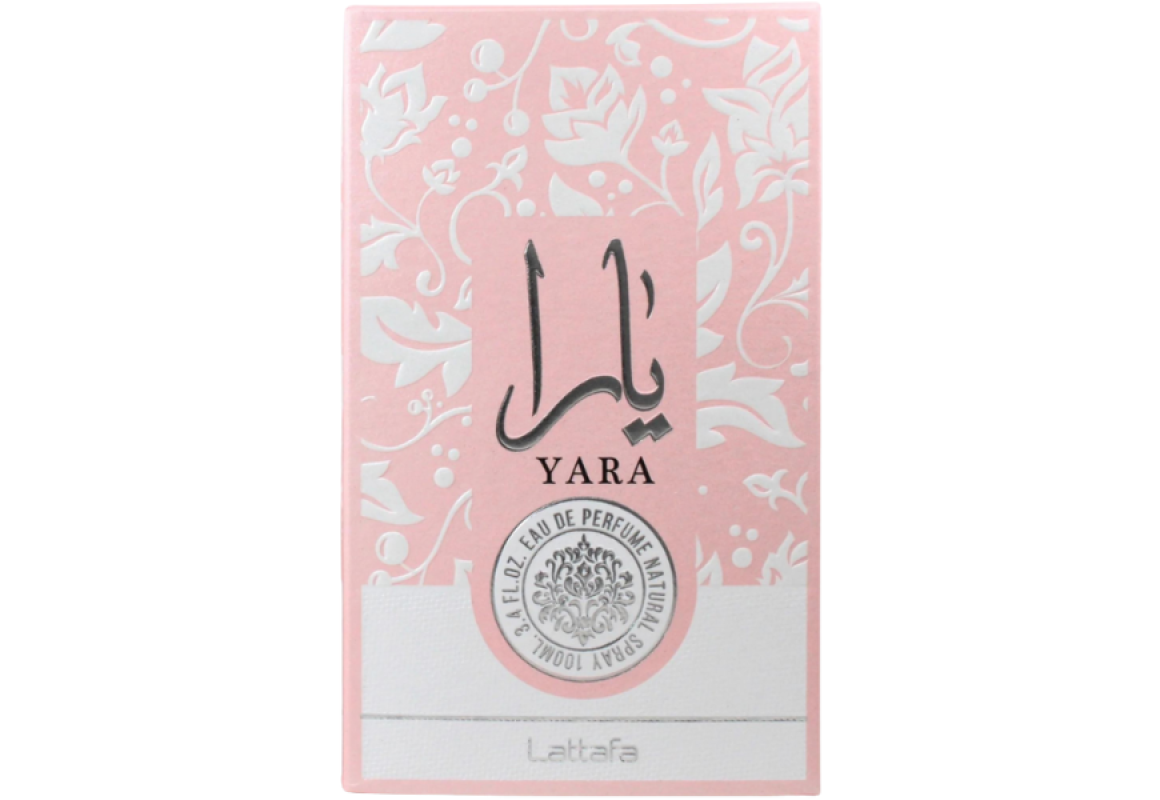 Yara Eau de Parfum da grife Lattafa, família olfativa oriental baunilha, perfume feminino dos Emirados Árabes Unidos lançado em 2020.