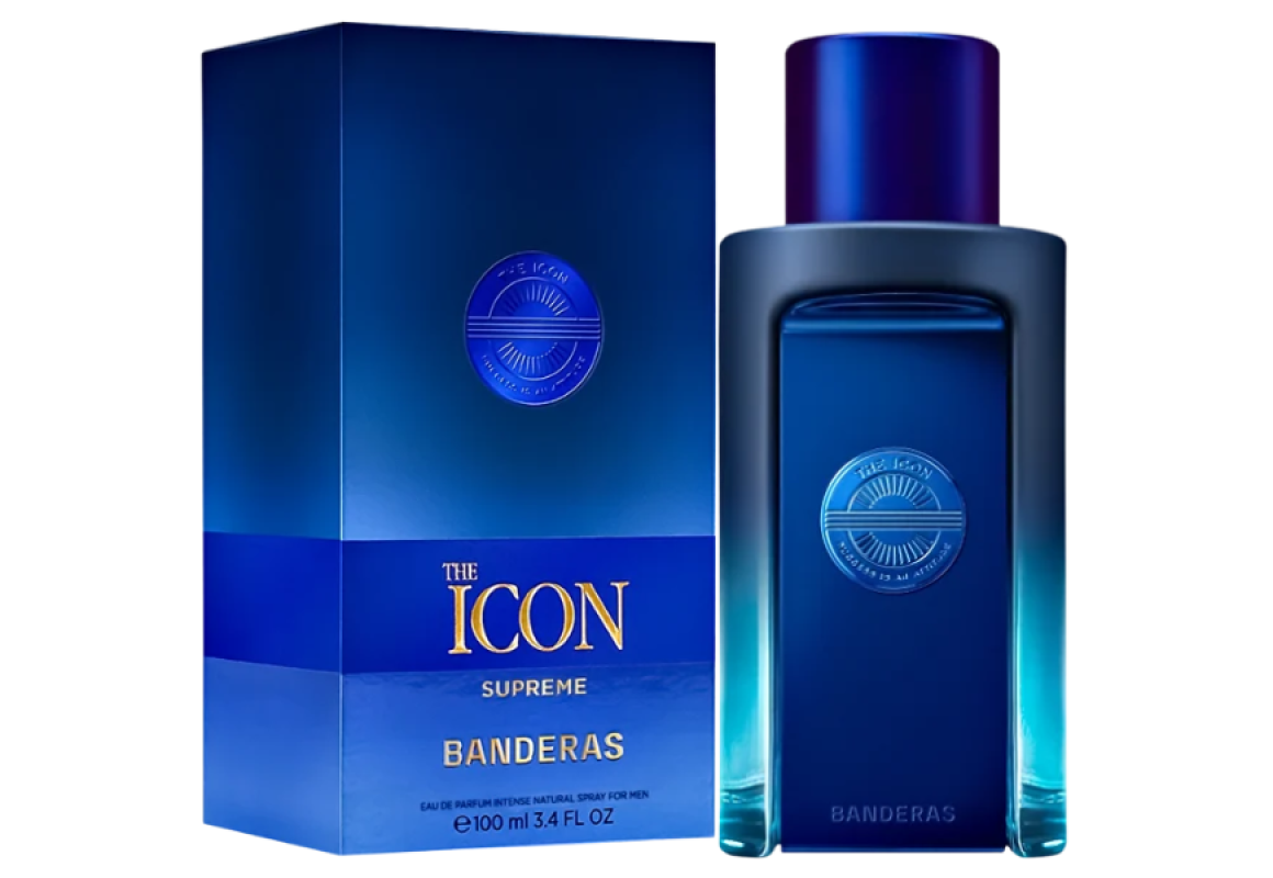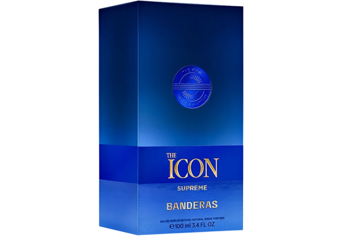 The Icon Supreme For Men Eau de PArfum Intense da grife Antonio Banderas, família olfativa aromático verde, perfume masculino espanhol lançado em 2025.